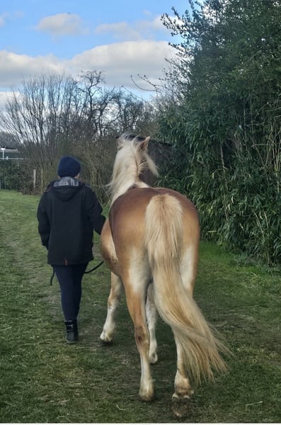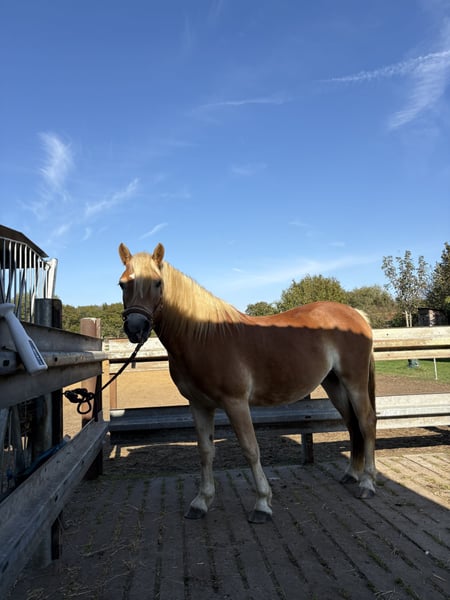 Haflinger Stute – jung, roh & mit viel Potenzial. Zum Verkauf steht eine wunderschöne Haflinger Stute, geboren am 22. April 2022, mit einem aktuellen Stockmaß von ca. 1,45 m. Die Stute ist halfterführig, ansonsten jedoch komplett roh und durfte bislang einfach Pferd sein. Dadurch bietet sie beste Voraussetzungen, um sie ganz nach den eigenen Vorstellungen auszubilden. Sie überzeugt durch ihre sehr gute Abstammung und ein ausdrucksstarkes, harmonisches Erscheinungsbild. Dank ihres Gebäudes, der Ausstrahlung und der Veranlagung ist sie vielseitig einsetzbar: -ideal als zukünftige Zuchtstute -gut vorstellbar für das Kutschefahren -ebenso sehr interessant für die Dressur oder als solides Freizeitpferd. Ein junges Haflingermädchen mit viel Potenzial, das auf den richtigen Menschen wartet, der sie behutsam fördert und ausbildet. Aufgrund ihres Ausbildundstand benötigt sie eine liebevolle dennoch konsequente Führung. Ihre Abstammung steht für gutes Interior & Verlässlichkeit ..siehe Bild. Eingetragen im Westfälischen Pferde Stammbuch. Sie steht im Offenstall - kennt aber auch Box. Bei ernsthaftem Interesse freuen wir uns über eine Kontaktaufnahme.