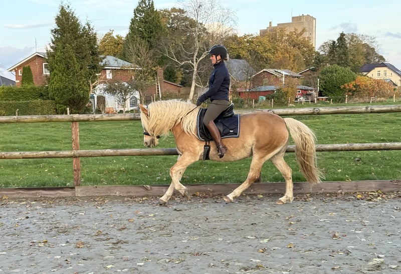 Wir verkaufen unsere typvolle, menschenbezogene Haflingerstute aus Zeitgründen in beste Hände. Sie wurde 4-jährig angeritten, anschließend nochmals auf die Koppel gestellt und wird seither schonend weitergearbeitet. Sie läuft sicher in allen drei Grundgangarten, zeigt dabei stets eine motivierte Arbeitseinstellung und möchte ihrem Menschen gefallen. Erfahrungen & Charakter: • Sicher mit Begleitpferd im Gelände • Gelassen im täglichen Hoftrubel: Kinder, Hund, Katze, Hühner, Traktor • Schmiede- und verladefromm, fährt auch allein ruhig im Anhänger • Kennt Offenstall sowie Box • Souverän und entspannt auf fremden Anlagen • Bisher immer gesund, kann problemlos auf die Weide Hinweis zum Ausbildungsstand: Aufgrund ihres Alters ist sie nicht für Anfänger geeignet. Sie benötigt einen sicheren, erfahrenen Reiter, der sie weiter fördert. Mit weiterer Ausbildung wird sie sicher auch eine tolle Partnerin für größere, fortgeschrittene Kinder. Diese Stute ist absolut artig im Umgang, klar im Kopf und bringt beste Voraussetzungen als Freizeitpferd oder für die weitere solide Ausbildung mit. Nur in verantwortungsvolle Hände abzugeben. Bei Interesse oder Fragen gerne melden – Besichtigung nach Absprache möglich. Keine Händler oder Reitschulen