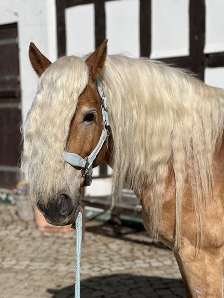 Manchmal gibt es Veränderungen im Leben die man leider nicht beeinflussen kann. Somit muss ich mich mit großen Bedauern und schweren Herzens von meiner Haflinger Stute trennen. Wegen Reitsport Aufgabe. Hallo ich bin eine Hübsche Haflinger Stute 7 Jahre jung, mit Charakter, Charme und guter Abstammung. Bei der FN bin ich registriert, da ich bei mein Züchter eine leistungsstuten Prüfung absolviert habe. Ich bin direkt vom Züchter zu meiner jetzigen Besitzerin gekommen. Ich bin sehr schlau und lerne schnell. Ich bin ziemlich vielseitig und gehe ohne Probleme alleine ins Gelände mit meiner Besitzerin ob spazieren oder ausreiten, wenn das Vertrauen da ist. Dressur gefällt mir auch, aber ich habe mehr Spaß an Stangenarbeit, da muss ich aber noch weiter gefördert werden. Da ich den typischen Haflinger Dickkopf habe, benötige ich eine konsequente aber liebevolle Führungsperson die mir auch Sicherheit vermitteln kann, sonnst übernehme ich gerne die Führung selbst. Denn ich teste auch gerne wie weit ich gehen kann. Somit bin ich nicht für Anfänger geeignet. Meine Haltung liegt meiner Besitzerin sehr am Herzen, sie möchte nicht das ich 24/7 in einer Box stehe oder ich keinen keinen Kontakt zu Freunden habe. Daher sollte ich am Tag draußen in einer Herde stehen können, nachts in der Box bin ich gewohnt. Da ich aber sehr leichtfuttrig bin, benötige ich kein 24/7 Heu und nur stundenweise Wiese. Ich bin gesund und habe keine Einschränkungen eine aktuelle AKU kann gerne gemacht werden (auf eigene Kosten) Falls du Interesse hast mich kennenzulernen schreib einfach meiner Besitzerin mit einer kurzen Vorstellung von dir, sie kann dir alles über mich erzählen und ein Termin vereinbaren. Kein Verkauf an Reitschulen da sie dafür nicht geeignet ist. Sie benötigt eine feste Bezugsperson. Probereiten wird mit einer Gebühr von 25€ berechnet um Reittourismus zu vermeiden. Dies wird beim Kauf verrechnet. Ihr passendes Zubehör kann dazu erworben werden.