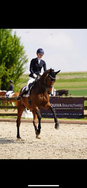 For sale is this super brave 9-year-old gelding by Lissaro van de Helle x Don Crusador. This bay gelding impresses with three very good, energetic basic gaits that are also great to sit. He confidently masters the exercises of class M** and is on his way to class S, jumping series changes up to three jumps with ease, always jumping uphill, and can also perform canter traverses without any issues. With his affectionate and cuddly nature, he is the perfect partner for both sport and leisure. He is farrier-friendly and loading-friendly, and he is accustomed to daily turnout in the pasture/paddock and is very sociable. Videos available upon request for serious inquiries. Please direct all inquiries by phone only. The price is in the upper price segment. Trial rides available for a fee of €35 to avoid riding tourism (the fee will, of course, be deducted from the purchase price).