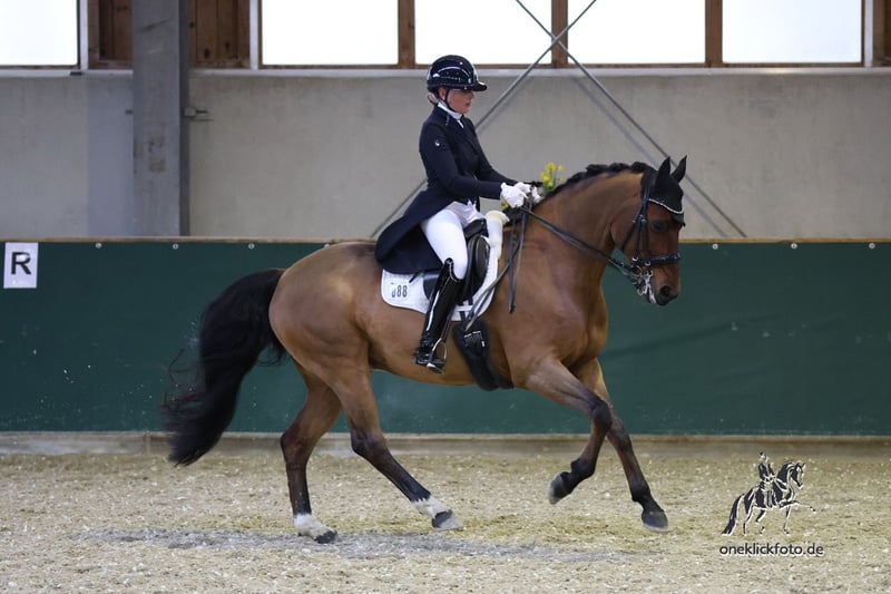 Feivi ist schon bei mir seitdem er 6 Monate alt ist. Ich habe ihn selber angeritten und bis zur Klasse S ausgebildet. Er ist ein absoluter Kumpeltyp, ausgestattet mit drei guten GGA, sehr verschmust und anhänglich, zu dem sehr schön zu reiten. Auf dem Turnier konnte er bereits M-Dressuren gewinnen und ist immer ein absolutes Verlasspferd. Auch Ausritte macht er sehr gerne und problemlos alleine. Da ich ihm zeitlich einfach nicht mehr gerecht werde, suche ich schweren Herzens für ihn ein neues 5* zu Hause. Ich könnte ihn mir gut als Pony-Umsteiger und Lehrpferd vorstellen. Hauptsache eine Familie, die ihn genauso zu schätzen weiß wie wir. Da er nicht gerade riesig ist, wäre ein großer Reiter nicht so passend. Auf Grund eines Befundes deutlich unter Wert. Platz vor Preis. Video und weitere Informationen gerne auf Anfrage.