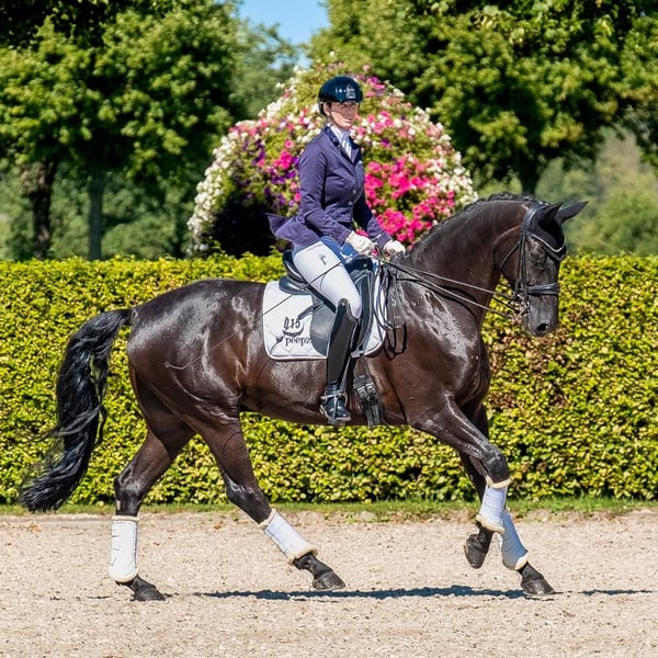 C'est à regret que j'ai décidé de vendre mon cheval de dressage pour des raisons personnelles. Mon travail, ma famille et le temps qu’un cheval mérite ne me permettent plus de concilier tout cela de manière optimale – et je souhaite le meilleur pour lui. Il n’est pas seulement un véritable atout visuel, mais surtout un partenaire fiable avec un caractère exceptionnel. Que ce soit pour l’entraînement ou en compétition, je pouvais partir seul avec lui sans aucun problème. Il se distingue par sa volonté de performer et son comportement honnête. Il faut souligner son talent pour les exercices de collection : la piaffe et la passage lui réussissent très bien. Le travail à la main lui procure également beaucoup de plaisir. Grâce à sa capacité à galoper très petit, il réalise aisément des pirouettes. Sur le plan de la santé, il est important de mentionner qu’une blessure au tendon s’est complètement guérie. De plus, un diagnostic de syndrome de la couronne du pied a été posé. Il est actuellement totalement apte au travail et sera bien entendu présenté en conséquence. En raison de ces diagnostics, il est proposé à un prix nettement inférieur à sa valeur réelle. Ce n’est pas un cheval pour débutants et il doit être confié à des mains expérimentées et ambitieuses, capables de continuer à développer son potentiel et de respecter ses besoins. Je souhaite pour lui un foyer aimant où il sera toujours encouragé et apprécié. En cas d’intérêt sérieux, je serai ravi de recevoir un message.