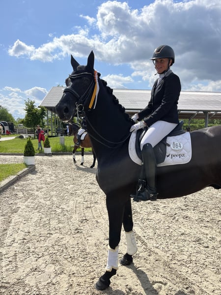 Schweren Herzens habe ich mich aus persönlichen Gründen dazu entschieden, mein Dressurpferd zu verkaufen. Beruf, Familie und die Zeit, die ein Pferd verdient, lassen sich für mich nicht mehr optimal vereinbaren – und ich wünsche mir für ihn das Beste. Er ist nicht nur ein echter Blickfang, sondern vor allem ein verlässlicher Partner mit einem großartigen Charakter. Ob Training oder Turnier – ich konnte jederzeit problemlos alleine mit ihm unterwegs sein. Er überzeugt durch seine Leistungsbereitschaft und seinen ehrlichen Umgang. Besonders hervorzuheben ist sein Talent für die versammelnden Lektionen: Piaffe und Passage liegen ihm sehr gut. Auch die Handarbeit macht ihm große Freude. Durch seine Fähigkeit, sehr klein zu galoppieren, fallen ihm Pirouetten leicht. Gesundheitlich ist zu erwähnen, dass ein Sehnenschaden vollständig ausgeheilt ist. Zudem liegt eine Hufrollendiagnose vor. Er ist aktuell voll belastbar und wird selbstverständlich auch entsprechend vorgestellt. Aufgrund dieser Befunde wird er deutlich unter seinem eigentlichen Wert abgegeben. Er ist kein Anfängerpferd und sollte in erfahrene, ambitionierte Hände kommen, die sein Potenzial weiter fördern und ihm gerecht werden. Ich wünsche mir für ihn ein liebevolles Zuhause, in dem er weiterhin gefördert und geschätzt wird. Bei ernsthaftem Interesse freue ich mich über eine Nachricht.