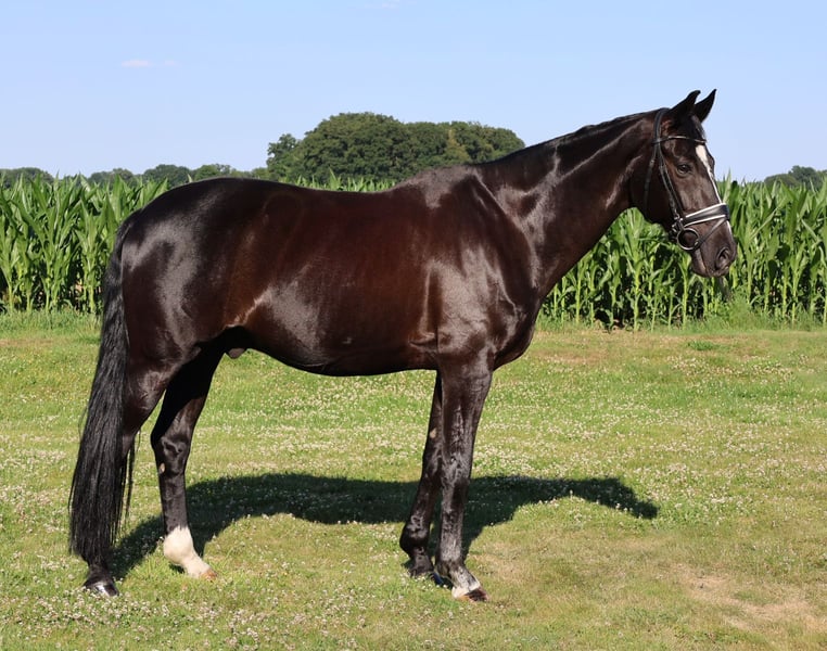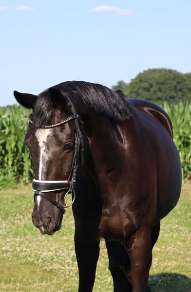 Skywalker has been trained up to advanced (S**) level and impresses with his confident lesson reliability. With an assertive and sensitive rider, he even shows some single changes and approaches to passage, which underlines his talent and rideability. A good example of his reliability can be seen in our video: Here you can see our trainee, who is successful in competitions up to elementary level. Although she is not yet experienced in the higher lessons, Skywalker leads her safely through the demanding exercises. We deliberately opted for this rider, even though Skywalker could be more expressive and more flexible under other riders. This shows how clearly trained and confident he is - even with less experienced riders. He gives his rider a good feeling and is ideal for someone who is looking for an experienced instructor who has mastered the high lessons. Although his main focus is on dressage, Skywalker also enjoys other activities. Especially when free jumping he shows a lot of joy and energy, which underlines his positive attitude towards work. We are selling Skywalker on behalf of our client and would like to find him a loving home where he is valued as a teacher. The ideal combination would be with a motivated rider who wants to develop and learn and a trainer who will accompany the new combination of rider and horse with lessons and occasional riding. We are sure that Skywalker will enjoy his work for many years to come, but ideally we would like him to be able to enjoy his well-earned retirement.