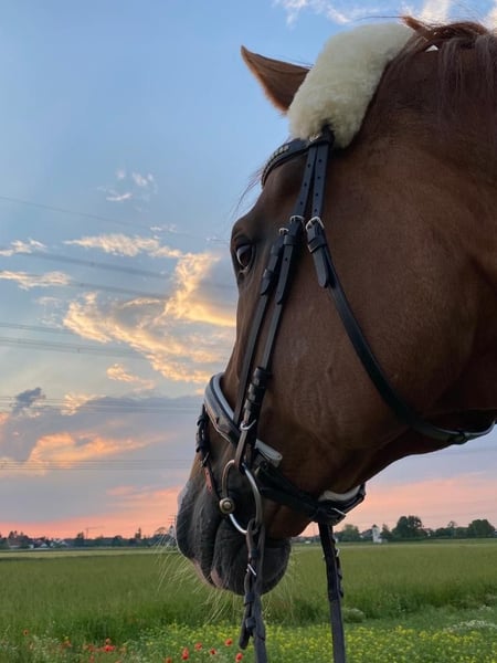 Ein schöner imposanter 16 jähriger Wallach von White Star, Größe ca. 179 cm. Leider aus Zeitgründen abzugeben. Wir haben den Fuchs in 2021 erstanden. Er lief bis S*-Dressur erfolgreich und hat uns auch noch einige Schleifen in M** beschert. Das Pferd hat Probleme im rechten Knie und Fesselgelenk. Das hintere rechte Fesselgelenk wurde Ende 2024 in der Hanseklinik gespült und behandelt. Es liegt ein Knorpelschaden vor. Im rechten Knie liegt Arthrose vor, welches aber noch nicht wirklich negativ auffiel und ein Zufallsbefund war, um nach der Lahmheit zu suchen. Es kam im Jahr 2024 immer wieder zu diffusen Lahmheiten, die prompt eintraten, deswegen gab es mehrfache Abklärungen in der Klinik und die letztendliche Diagnose, dass das Knorpelgewebe im Fesselgelenk geschädigt ist. Die Knorpelschädigung ist nicht reversibel und kann nur entweder durch regelmäßige Behandlung und gute Haltung im Griff gehalten werden (wenig harte Böden). Bewegung ist aber ein Muss. Es gibt aber keine Garantie, wie langer der Knorpel hält. Das Pferd hat zudem Kehlkopfpfeifen, welches aber bisher zu keinen Auffälligkeiten und Einschränkungen geführt hat. Zudem webt er je nach Unterbringung stärker bis fast gar nicht. Mit diesen Mängeln wurde er gekauft. Er ist ein liebenswürdiger, sensibler und verspielter Typ der auch gerne an der Longe Flugkünste ausführt. Kein Anfängerpferd, kein Schulpferd, nur für Reiter, die erfahren sind und Zeit und Spaß daran haben mit solch einem Pferd zu arbeiten und die sich auf sensible Pferde einlassen können. Das Pferd zur Zeit wird geritten und longiert und geht Führanlage. Somit ist es im Training und wird normal belastet. Laut dem Tierarzt soll das Pferd auch normal bewegt werden. Er ist ein guter Koppelpartner, mag aber Fliegen nicht so gerne. Zudem ist er sehr sozial und verspielt. Nur in gute Hände abzugeben. Platz vor Preis. Weitere Informationen werden bei wirklichem Interesse gegeben.
