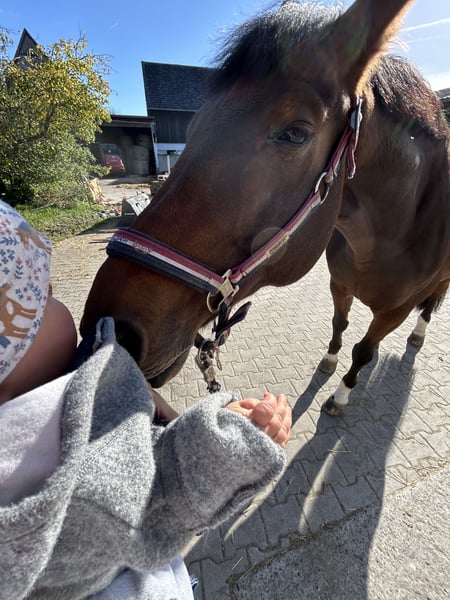 Hello, my name is Flirty, and I turned 16 years old in July. I am a loving gelding who adores children, is farrier- and loading-friendly, and is always up for some fun. My small family is looking for a new home for me because they currently have too little time. They would love to find someone who has time to go out riding in the countryside with me and enjoys groundwork with me. Due to my kissing spines, it is important that my back muscles stay strong; therefore, I am NOT suitable as a weight carrier. I can go out riding alone or in a group. I also love children, and traffic is no problem for me. At night, I need a box stall to rest, and during the day, I require plenty of turnout to move around freely. If you enjoy groundwork and want to go out riding in the countryside from time to time, can provide me with a stable at night and plenty of turnout during the day, then you should definitely contact my family! This is not an urgent sale, and quality comes before price. Flirty will only be placed in the very best hands! I am happy to answer any questions about him!