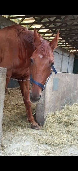 Hallo, ich verkaufe schwerenherzens meinen 16 jährigen fuchsfarbenen Hannoveraner Wallach. Sein Rufname ist Zorro. Er hat einen sehr lieben Charakter und eine top Abstammung. Leider kann ich ihn nur als Beisteller, bedingt reitbar verkaufen, da er sehr dünn ist. Er hat monatelang zusätzliches Futter bei mir bekommen und bekommt auch 24/7 Heu. Er frisst sehr gut, leider hat sich sein Zustand kaum verbessert. Wir haben mehrere Tierärzte kommen lassen um das abzuklären, allerdings hat niemand etwas gefunden (Bluttestergebnisse haben wir). Zorro ist stets freundlich und aufgeschlossen und rangniedrig. Er kennt Katzen, Hunde, Hühner,... Zorro war bis vor ca 3 Jahren ein Turnierpferd, er ist bis M gegangen. Dressur, sowie Springen und Vielseitigkeit. Sobald eine Vertrauensbasis zwischen Zorro und einem Menschen besteht, läuft er dem Menschen hinterher. Er ist sehr anhänglich und perfekt geeignet für Freiarbeit und man hat dieses "Ostwind Feeling". Er wird weit unter Preis verkauft! Seine Impfungen wurden aufgefrischt und Zähne ubd Hufe wurden letztes Jahr bei uns gemacht. Stockmaß: 1.70m ❗️Vater: First Dance❗️ Meldet euch gerne bei Fragen :) Nicht nur merken ;) Platz vor Preis. Die Bilder sind alle aktuell und somit ist das seine Statur. Bei einem Aufpreis von 500€ könnt ihr noch sein Zubehör (Sattel, Trense,...) dazugekommen. Ein Kennenlernen ist nach Absprache natürlich möglich :) Ihr 50 Herzen, meldet euch ;)