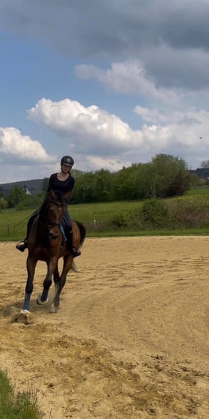 Elegant Hanoverian gelding for sale! Up for sale is a beautiful dark brown Hanoverian gelding, born in 2004. Standing an impressive 17.7 hands, he impresses with his elegant appearance and pleasant temperament. Despite being 19 years old, he remains in top form and is eager to continue his training. Due to health and family reasons, it is unfortunately no longer possible for me to give him the attention he deserves. This versatile dressage partner has a solid basic education and impresses with his willingness and eagerness to learn. He is confident and fearless in the terrain and always motivated. He is suitable for advanced riders and can also serve as a family horse to nurture young riders. However, I do not want to sell him as a “sport horse,” despite his good training. If interested, I am happy to provide further information and arrange a viewing. To counteract riding tourism, I will charge €25 for a trial ride, which will be deducted from the purchase price.