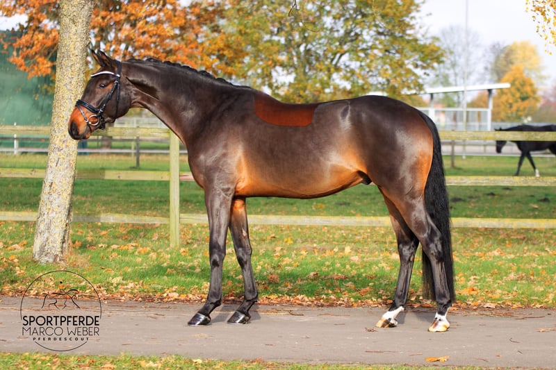 Hannoveraner • Wallach • *2022 • ca. 1,66 m ⚜️ Damsey – Florencio – Prince Thatch xx ⚜️ 💥 Typvoll, charakterstark & bewegungsstark! 💥 Dieser junge Hannoveraner Wallach überzeugt mit Charme, Ausdruck und toller Bewegungsqualität. Er stammt ab vom bewährten Grand-Prix-Vererber Damsey, der für Rittigkeit, Versammlungsfähigkeit und Leistungsbereitschaft steht. Mütterlicherseits bringt Florencio I über Florestan Dynamik und Schub mit, während Prince Thatch xx für Leichtfüßigkeit und ein edles Erscheinungsbild sorgt. „Dermann“ ist noch nicht allzu lange unter dem Sattel, zeigt sich dabei jedoch stets lernwillig, motiviert und möchte immer alles richtig machen. Er hat zudem einen unglaublich tollen Charakter – ehrlich, menschenbezogen und immer bemüht, seinem Reiter zu gefallen. Ein Nachwuchspferd mit Perspektive für den ambitionierten Dressurreiter. ✅ Ein sehr guter Röntgen-TÜV liegt vor. 📍 Standort: Weyhe 📞 Kontakt: +49 173 3013499