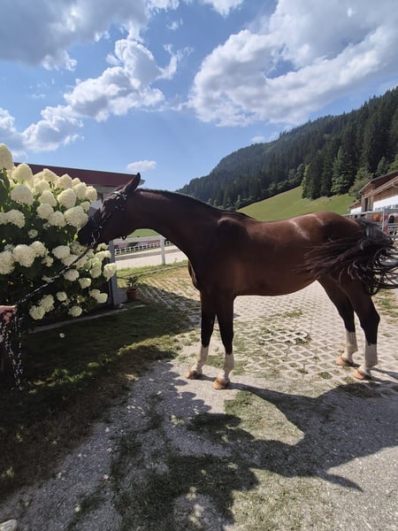 Young Hanoverian Gelding for Sale – Perfect for Show Jumpers! We are offering a promising dark brown Hanoverian gelding, born in 2022. Standing at 16.1 hh, he is the ideal size for ambitious riders seeking a reliable jumping partner. His friendly nature and well-structured training make him an excellent choice. The gelding impresses with his talent for jumping, eagerness to learn, and elegant appearance. He is healthy and regularly vaccinated. If interested and for more information, please feel free to contact me. Viewing and a test ride can be arranged, but only experienced riders are recommended as he has recently been backed.