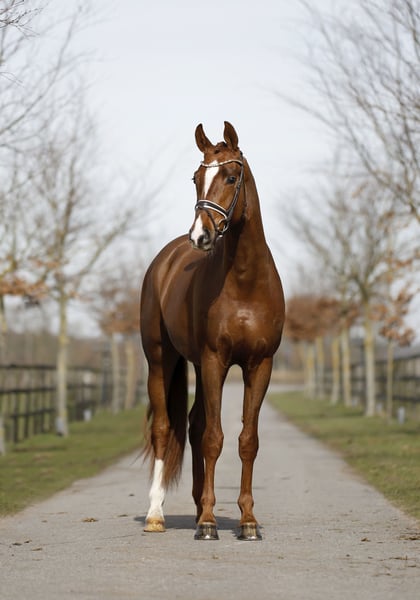 Nowoczesny i pięknie wykończony koń typu górskiego w ciemnej maści ognistej z ładnym oznakowaniem. Jako prawdziwa wyjątkowość pod względem jazdy, równowagi i nastawienia do pracy, ten bardzo inteligentny i charakterny młody koń, mimo młodego wieku, prezentuje się już doskonale i niezwykle równomiernie w pracy. Wysoce przyzwoity, sympatyczny i wdzięczny kandydat do ujeżdżenia, którego jazda i szkolenie przychodzą z łatwością – i który codziennie sprawia radość. Ze względu na okoliczności kilka razy zaczął się wspinać na żłób z paszą, ale przy otwartych oknach i dużej ilości pastwisk i padoku można to obecnie powstrzymać, i nie robi tego. Nigdy nie miał z tym problemu. Dlatego cena jest realistyczna, a koń preferowany jest do domu 5-gwiazdkowego. Badanie techniczne (TÜV) dobre.