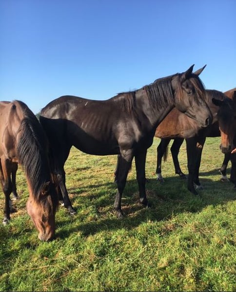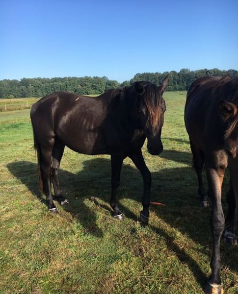 Wegen Bestandsverkleinerung sucht dieser talentierte Wallach einen neuen Besitzer. Direkt vom Züchter. Alter 3 Jahre, Farbe Rappe, roh. Hamilton verfügt über 3 sehr gute Grundgandarten mit einem unerschütterlichem Takt. Er ist dressurmäßig gezogen, zeigt aber auch Talent fürs Springen. Deshalb kann ich ihn mir auch gut in der Vielseitigkeit vorstellen. Die Mutter (mit Vollblutanteil) ist sehr rittig und mit guten Grundgangarten ausgestattet und ebenfalls talentiert am Sprung. Sie hat ein Stockmaß von 1,70 m. Die letzten 2 Fotos zeigen die Mutterstute im Alter von 4 Jahren. Sie ist die Halbschwester von Albi Pedrams Hidalgo (S-Dressur erfolgreich) - beide stammen aus der gleichen Mutterstute. Der Vater von Hamilton ist Helium (Stockmaß 1,72 m ) - ein sehr erfolgreicher Trakehner Hengst, der auch auf S-Niveau unterwegs ist. Ein 4-jähriger Vollbruder kann ebenfalls besichtigt werden. Er ist schon angeritten und zeigt sich unter dem Sattel absolut unkompliziert, sehr rittig mit ebenfalls sehr guten und besonders schwungvollen Gangarten und Springtalent. Eine Ankaufsuntersuchung wurde bisher, da er bei uns geboren wurde, noch nicht gemacht. In den 3 Jahren war er nie krank oder lahm. Hamilton ist mit einer Gruppe gleichaltriger Wallache aufgewachsen. Er ist eher rangniedrig und zettelt keinen Streit an. Hamilton steht noch bis zum Frühjahr in der Herde und soll dann eingeritten werden. Der Verkaufspreis wird dann entsprechend angepaßt. Ein früheres Einreiten wäre ebenso möglich. Wenn ihr Interesse habt, meldet euch gern per Whats app 0172 1857496. Liebe Grüße