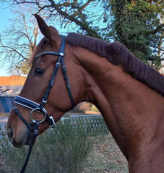 Hongre hannovrien, né en 2023, alezan, avec une taille d’environ 1,69 m. Ce jeune mâle prometteur séduit par son allure élégante et sa solide formation de base en dressage. En tant que pur-sang hannovrien, il allie qualité de mouvement, envie d'apprendre et un tempérament amical, ce qui le rend intéressant tant pour l’amateur ambitieux que pour le professionnel en dressage. Sa facilité à être monté et son caractère agréable le distinguent. Un partenaire prometteur pour l’avenir en dressage !