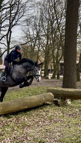 Unser vierjährige Wallach, Gerne Groß abstammend von Grey Top/ Stolzenberg ist ein ganz unkomplizierter, lustiger, kleiner Freund, der mit Talent am Sprung überzeugt. Im letzten Jar angeritten präsentiert er sich schon recht abgeklärt, aber sportlich ambitioniert. Neben der Dressurarbeit und dem Springen, sowie Freispringen kennt er schön Gelände und lässt sich auch von Kindern reiten und händeln. Im Umgang, mit anderen Pferden, beim Verladen, sowie beim Schmied ist er artig. Das Pferd hat noch keinen TÜV Umfassendes Videomaterial und weitere Infos gern unter 0174/5630008