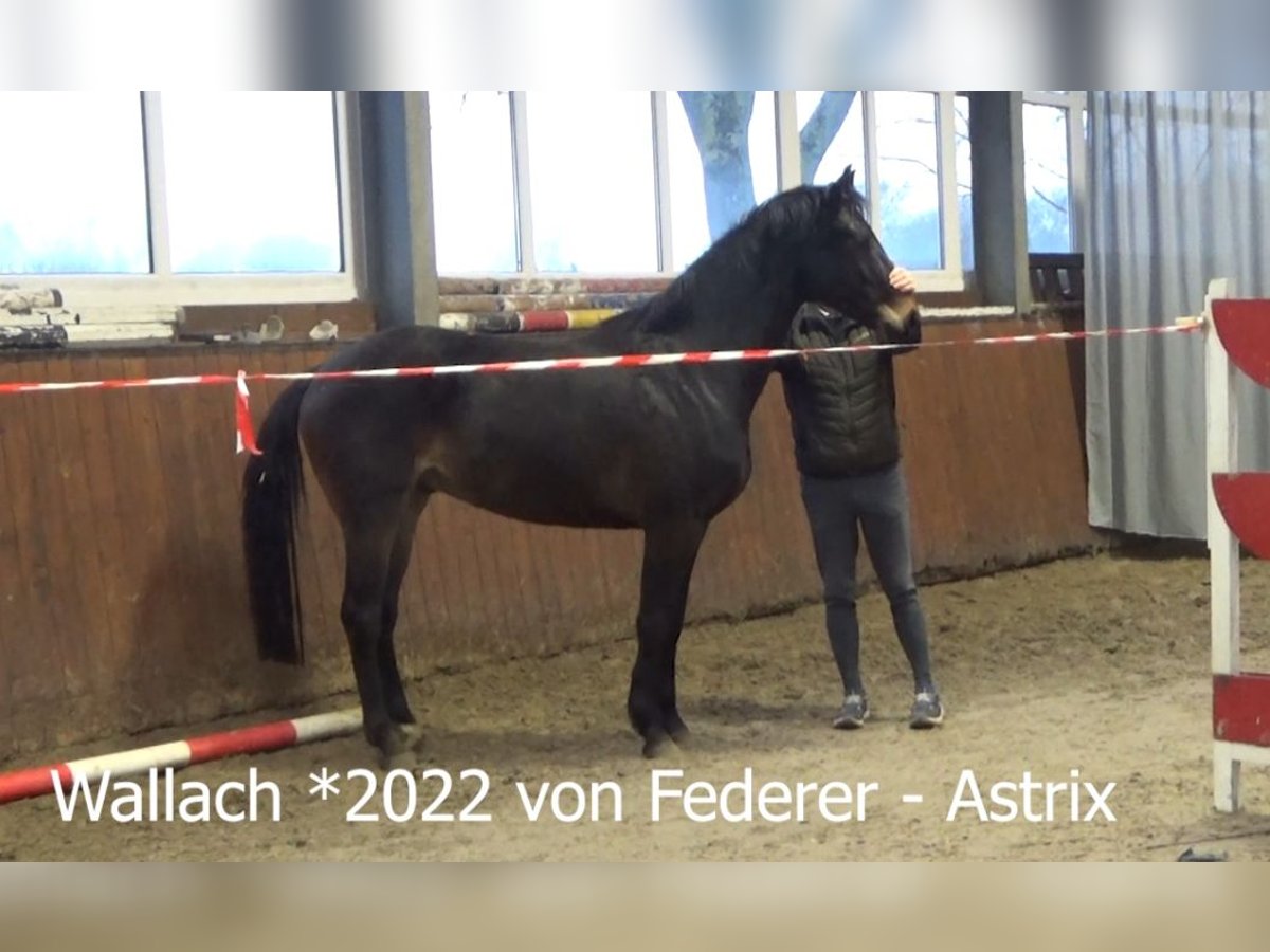Ten uroczy, roczny wałach z 2022 roku wyrósł w stadzie i jest teraz gotowy na nowe wyzwania. Ze względu na starą, wyleczoną kontuzję na pastwisku oferowany jest w atrakcyjnej cenie. Dostępny jest bardzo dobry przegląd techniczny (TÜV) wraz z 25 zdjęciami rentgenowskimi. Ojciec Federer, dzięki swoim osiągnięciom i wybitnym młodym ogierom, był głównym zwycięzcą nagrody głównej w Związku Oldenburskim. Obecnie ma siedem lat i już odniósł kilka zwycięstw w konkursach na poziomie S-średnim w ujeżdżeniu.