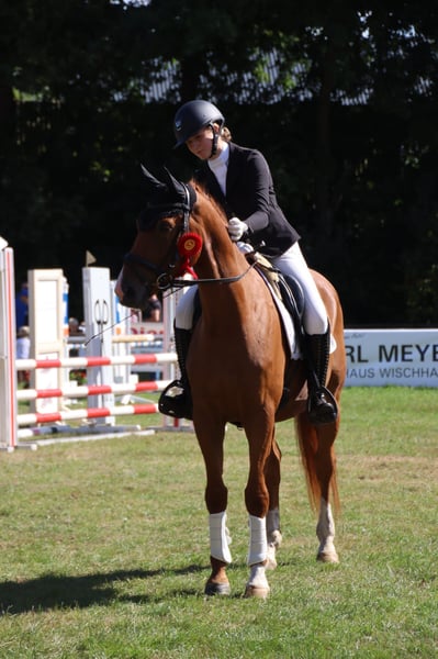 Vielversprechender 4-jähriger Wallach mit Top-Abstammung Zum Verkauf steht ein bildschöner, 4-jähriger Fuchswallach mit erstklassiger Abstammung: Vater: Rock Springs ( Rock Forever - Fidertanz - De Niro ) Muttervater: Lauries Crusador xx Stockmaß: zurzeit 1,65 m Dieser junge Wallach überzeugt mit einem ruhigen, ausgeglichenen Charakter und hat eine äußerst positive Arbeitseinstellung. Sein angenehmer Vorwärtsdrang kommt jedem Reiter entgegen. In seine ersten Dressurpferde A Prüfung erreichte er gleich eine Platzierung. Auch kleine Sprünge unter dem Reiter hat er bereits kennengelernt – dabei zeigt er sich aufmerksam, mutig und vielseitig veranlagt. Im täglichen Umgang ist er ein echter Schatz: • Brav beim Putzen, Führen und beim Schmied • Sozial verträglich, derzeit 24/7-Weidegang mit anderen Pferden • Kennt sowohl Boxenhaltung als auch Offenstall Haltung Ob Dressur, Springreiten oder ambitionierter Freizeitpartner – dieser junge Wallach bringt alles mit, was man sich wünscht. Bei Interesse oder für weitere Informationen melden Sie sich gerne unter dieser Nummer: +49163 5341420