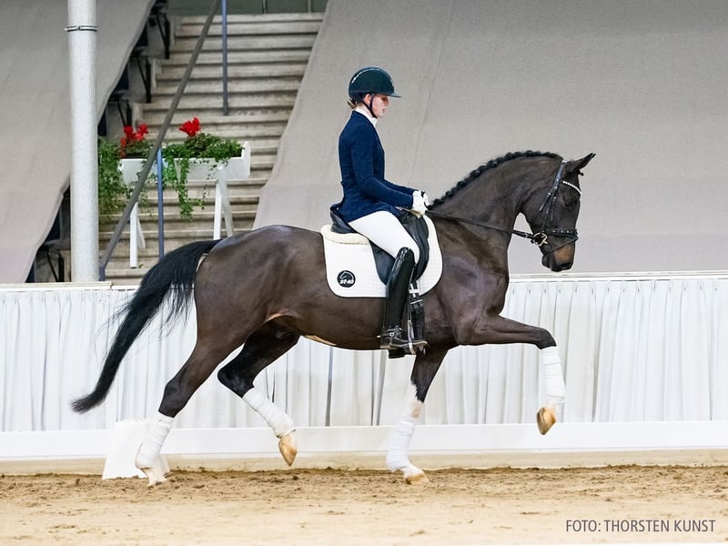 Goodman B displays a naturally elegant posture with beautiful, inherent self-carriage. Well-proportioned in side view, he is a well-prepared dressage prospect with good nerves and a solid foundation in riding. His half-brother Fred von Feuerstein was one of the most sought-after dressage horses at the Verden auction in April 2025 and has been successful in advanced dressage tests. The granddam Salome has produced four successful sport horses, including Hot Secret by Secret (competing internationally at Grand Prix level). **1st Generation** Auction horses: Fred von Feuerstein by Fusionist (Auction 2025); Ducati by Dancier (Auction 2024); HannPrA Diva by Damon (Auction 2021). **2nd Generation** Dressage sport horses: - Hot Secret 3 by Hotline (Competing internationally at Grand Prix with Birgit Wientzek Pläge, Grand Prix Special - international - 2021, Grand Prix Kür - international - 2021, Grand Prix - international - 2021, GPS - Grand Prix Special 2021, GPS - Grand Prix Special 2019, GP - Grand Prix 2019). - Fortuna of Fate by Floriscount (M** level with Elisabeth Brendler). Auction horses: - Dorie by Da Costa (Auction 2023). - HannPr Feine Deern / Feine Deern 28 by Floriscount (Auction 2019, Herwart von der Decken Show Verden 2018). - Quick as Lightning by Quasar de Charry (Auction 2015). Premium daughters: - HannPrA Fortuna VS by Falihandro (Herwart von der Decken Show Verden 2023). - HannPr Roseanne by Rocky Lee (Herwart von der Decken Show Verden 2020). - StPr Lady Gaga by Lauries Crusador (Herwart von der Decken Show Verden 2013). **3rd Generation** Dressage sport horses: - Luxor 141 by Lauries Crusador (S* level with Laura Huch). - Lauriger by Lauries Crusador (M** level with Christine Hilpert). **4th Generation** Dressage sport horses: - Hawaiianer by Hotline (S* with Julia Sarah Hamberger, FoVA 2009). - Domingo 505 by Davignon I (S* with Manfred Herrmann). - Davinciano MN by Danciano (M* with Maren Watermann). - Donna Diana / Donna Diana 34 by Davignon I (M with Kerstin Mehlis-Nennecke). Jumping sport horses: - Echt Gut by Earl (1.40 m with Andre Henkel, Auction 2009). Advanced dressage tests: - Latino Dancer 3 by Laudabilis (L level, Auction 2011). Auction horses: - Step by Step by Sandro Hit (Auction 2003). **5th Generation** Premium daughters: - StPr Wonderful by Werther. Mother: Lady Gaga Premium status: 1xIa Performance scores: - Dressage: 10/9 - Field test: - Trot: 7.50 - Canter: 8.00 - Walk: 7.00 - Average rideability: 8.25 - Average jumping: 7.00 Granddam: Salome Performance scores: - Field test: - Trot: 8.50 - Canter: 8.00 - Walk: 8.00 - Average rideability: 8.50 - Average jumping: 6.00 The horse is a Verden auction horse and will be auctioned online on January 25, 2026. From January 12 to January 25, the horse can be viewed and tried during daily public training sessions. The starting bid at the auction is €8,000.