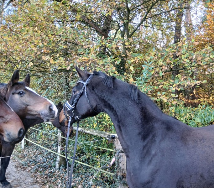 The young gelding is very sweet and affectionate. Still a bit shy and reserved. He was lightly backed in the spring and then turned out to pasture again. He has been ridden again for the past two weeks. A little gem for the ambitious dressage rider. He comes directly from the breeder. Three years old, with good X-ray clearance. A small raw diamond, ready to be refined by someone with a keen eye.