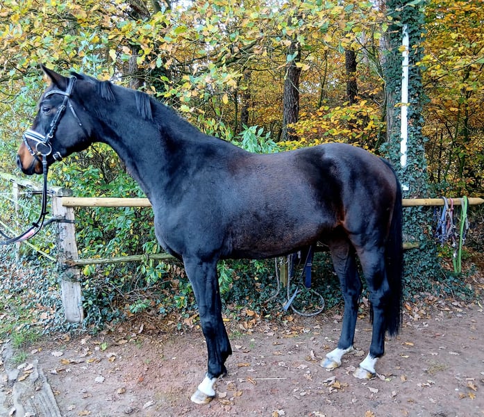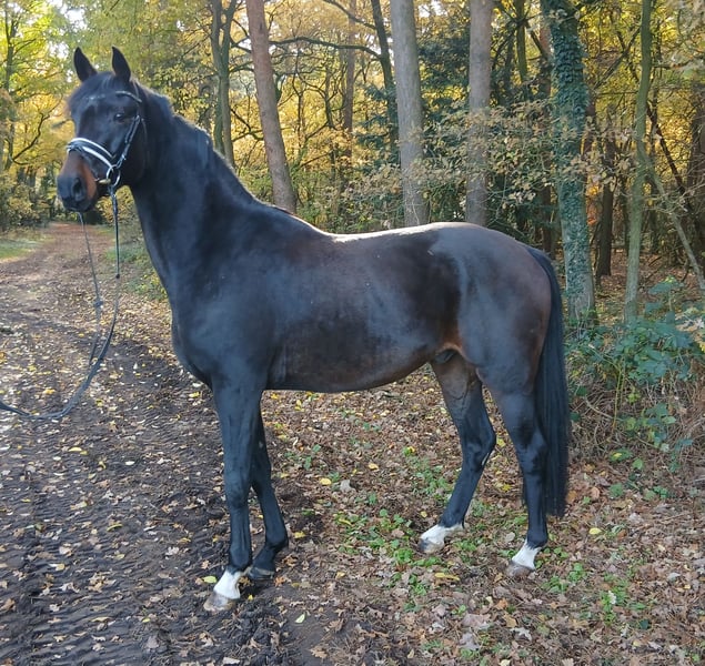 Młody koń jest bardzo łagodny i przytulny. Jest jeszcze nieco nieśmiały i powściągliwy. Wiosną zostałby delikatnie wyprowadzony do jazdy, a następnie ponownie wypuszczony na pastwisko. Od dwóch tygodni znów jest poddawany treningowi. To mały skarb dla ambitnego jeźdźca jeżdżącego w dyscyplinie ujeżdżenia. Pochodzi prosto od hodowcy. Ma trzy lata, dobre wyniki rentgenowskie i certyfikat TÜV. To mały, surowy diament, który sam możesz wyrzeźbić.