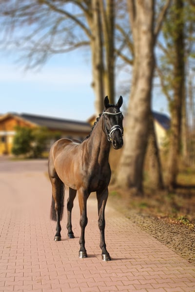 Hannoveraner Wallach, geb. 2022, Rappe, mit einem Stockmaß von 166 cm – ein vielversprechendes Nachwuchstalent für die Dressur. Dieser charmante Rappe besticht durch seine elegante Erscheinung und sein vielversprechendes Fundament. Er wurde bereits gut angeritten und zeigt sich im Umgang äußerst freundlich und lernwillig. Dank seines ausgeglichenen Charakters ist er bestens für den ambitionierten Dressurreiter geeignet. Mit seinem modernen Erscheinungsbild und seinem Potential ist dieser Hannoveraner-Wallach eine ideale Investition für die Zukunft im Dressursport. Bei Interesse freuen wir uns auf Ihre Kontaktaufnahme.