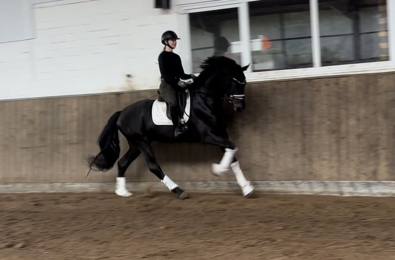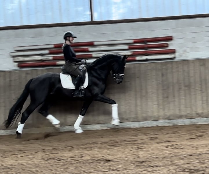 For sale is a beautiful Hanoverian gelding, born in 2021. This elegant black horse not only impresses with its appealing appearance but also with its promising talent in dressage. The gelding already shows promising signs in training and has a friendly, eager-to-learn disposition. If you are interested or have any further questions, please feel free to contact me. Viewings are possible by arrangement. We look forward to your message!