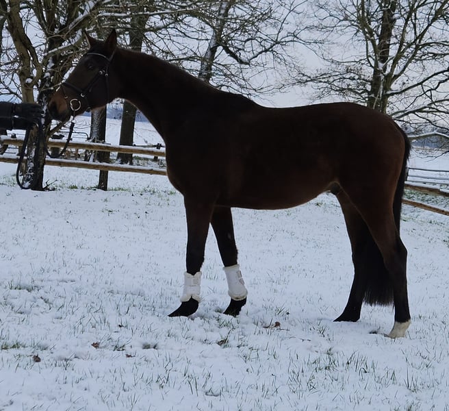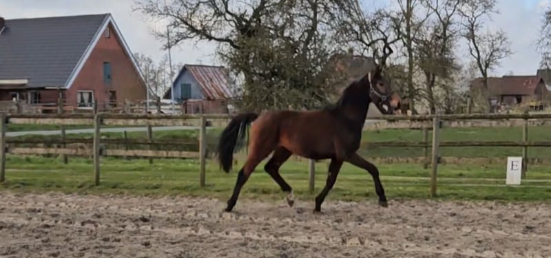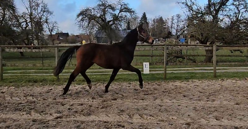 Strong-moving gelding from our own breeding, who is easily lunged. He also makes a good jump when free jumping. A vet check from late summer 2024 is available with no findings.