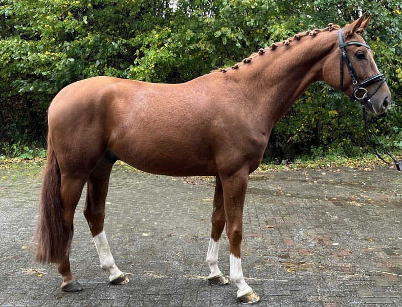 Se ofrece a la venta este potro de 4 años, que impresiona por su mirada sincera, su disposición y su carácter amigable. Sin duda, aún necesita ganar más estabilidad en las tres fases básicas de galope, pero su disposición para aprender debería facilitar un progreso rápido. Es dócil y sencillo en su manejo. Bajo la silla, siempre se muestra tranquilo y atento, esforzándose por complacer a su jinete. Un caballo de entrenamiento honesto, con tres pasos básicos sólidos, que seguramente brindará diversión día tras día.