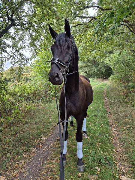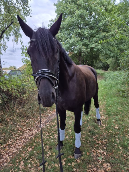 Junger Hannoveraner Wallach (2021) – Dressurabstammung (Apache x San Amour) Zum Verkauf steht ein 4-jähriger Hannoveraner Wallach (geb. 2021), der durch seine außergewöhnliche Abstammung, seine hervorragenden Grundgangarten und seinen ausgeglichenen Charakter überzeugt. Angeritten, brav und mit großem Potenzial für den Dressursport. Abstammung: Vater: Apache (KWPN) – international Grand Prix erfolgreich, bekannt für Rittigkeit und Bewegungsqualität Mutter: Hauptstutbuch Verdena (San Amour x Sandro Hit) – bewährte Dressurlinien, bekannt für Leistungsbereitschaft und Typ Damit vereint dieser Wallach Spitzenvererber wie Apache, Gribaldi, San Amour und Sandro Hit in direkter Linie – alles Namen, die in der internationalen Dressurszene für höchste Qualität stehen. Ausbildung: Schonend angeritten im Herbst 2024, weitergeritten bis Mai 2025. Danach genoss er eine wohlverdiente Weidepause im Herdenverband. Seit Anfang Oktober 2025 ist er wieder im regelmäßigen Training und wird dabei vernünftig und pferdegerecht Schritt für Schritt konzentriert weitergearbeitet. Er kennt Bodenarbeit, Longieren, Stangenarbeit und Ausritte. Spaziergänge alleine sind für ihn kein Problem, er kann aber auch problemlos zusammen mit anderen Pferden geführt werden. Beim Alleinreiten benötigt er noch etwas Begleitung. Charakter: Lieb, menschenbezogen, lernbereit und unkompliziert – ein echtes Verlasspferd im täglichen Umgang. Gesundheit: TÜV ohne Befund, regelmäßig geimpft und entwurmt, schmiedefromm. Besonderheiten: Sehr korrekt gebaut, hervorragende Bewegungsqualität, ideal für den Dressursport, aber auch als edler Freizeitpartner geeignet. Probereiten: Nach Absprache möglich, sobald er weitere trainiert wurde.