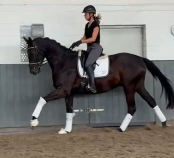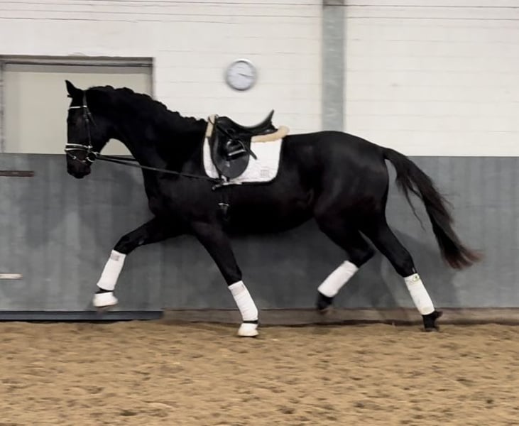 **Advertisement for sale: Hanoverian gelding for sale** A promising Hanoverian gelding, born in 2022, is for sale. This impressive black horse not only impresses with his outstanding potential in dressage sport. **Characteristics:** - Breed:** Hanoverian - **Sex:** gelding - Year of birth:** 2022 - **Color:** Black - Height:** 170 cm - **Discipline:** Dressage This young gelding already shows very good movements. He is eager to learn, attentive and always motivated at work. Due to his age, he is still in training, but already has all the prerequisites to be successful in dressage in the future. His even temperament and friendly character make him an ideal partner for ambitious riders looking for a talented young horse. If you are interested in this promising Hanoverian gelding, please do not hesitate to contact us for further information or to arrange a viewing.