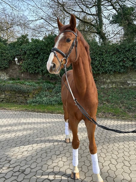 „Vielversprechender Rohdiamant zur eigenen Ausbildung“ Dieses talentierte junge Pferd bringt hervorragende Grundanlagen, Neugier und Lernbereitschaft mit. Thiago befindet sich noch am Anfang seiner Ausbildung und bietet daher die ideale Gelegenheit für Reiter, die ihr Pferd selbst formen und individuell fördern möchten. Ein echtes Zukunftspferd für ambitionierte Ausbilder und Menschen, die Freude daran haben, Potenzial zu entdecken und behutsam weiterzuentwickeln.