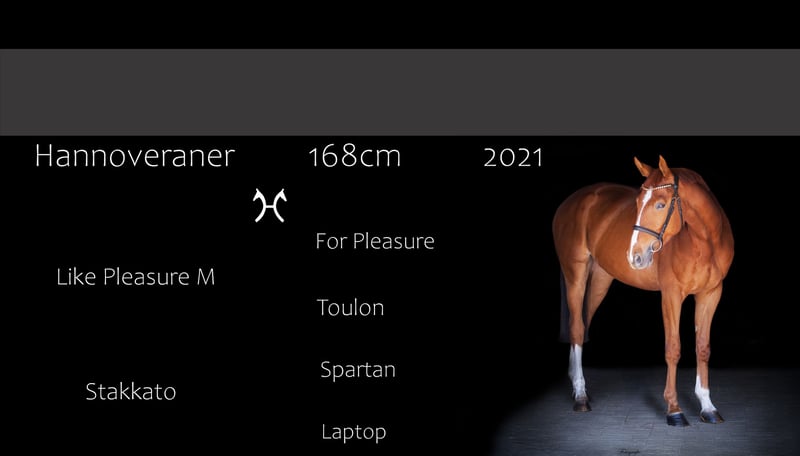 Offriamo un talentuoso stallone Hannoverano in vendita. **Dettagli:** Razza: Hannoverano Sesso: Stallone Anno di nascita: 2021 Colore: Baio Altezza: attualmente 169 cm Conosce macchine, maniscalco e trasportatore Questo promettente giovane stallone mostra un grande potenziale nel salto ostacoli e ha già accumulato buone esperienze nel lavoro e sotto sella. È ben educato, tranquillo nel maneggiarlo e ha un carattere amichevole. Conosce macchine, maniscalco e il trasporto! È stato montato con delicatezza e finora non ha avuto esperienze negative! Se siete interessati o per ulteriori informazioni, saremo lieti di ricevere un vostro messaggio!