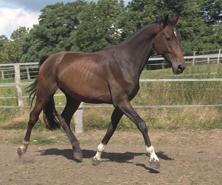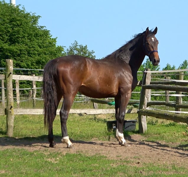 Il nostro inizialmente promettente e meraviglioso Querido ha ricevuto una diagnosi radiologica di osteomielite nel garretto anteriore sinistro a causa di una piccola ferita avvenuta un anno fa. Lo abbiamo lasciato muoversi liberamente per un anno al pascolo/paddock. Come si può vedere nel video attuale, non corre in modo del tutto chiaro. Radiologicamente non si osserva una guarigione, clinicamente c'è un evidente miglioramento. Lo cediamo come compagno, poiché possiamo accogliere solo fattrici, puledri e yearling fino a 2 anni, nella speranza che trovi amici e che la sua condizione migliori ulteriormente. Riteniamo che una tassa di protezione sia appropriata.