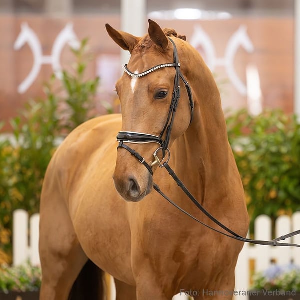 Bonds Barolo W überzeugt durch seine Zuverlässigkeit und eine herausragende Grundgangartenqualität, die sofort ins Auge fällt. Mit seiner Reiterin Lea Sophie Staedel konnte er bereits in einer Reitpferdeprüfung vordere Platzierungen erzielen. Sein Vollbruder erhielt 2020 ein positives Körurteil und unterstreicht damit die herausragende Leistungsfähigkeit dieser Familie. Der weitere Stutenstamm wird geprägt von Bodyguard WF v. Belissimo M (DRE: S mit Birgitt Balzer). Sportname: Bonds Barolo W Turniererfolge: RPF: 1/2. 1. Generation gekörte Hengste: gek. Hengst v. Bonds v. Bonds (Verden 2020,HM 2020). 3. Generation Sportpferde Springen: Corinero v. Coronas (SPR: 1,45 m mit Carina Janßen); v. Lancer III (SPR: 1,35 m mit Nikita POMOGALOVA). Aufbauprüfungen Dressur: Clementine/Clementine 17 v. Charming (DRE: L). 4. Generation Sportpferde Dressur: Bodyguard/Bodyguard WF v. Belissimo M (DRE: S** mit Birgitt Balzer); Don Salvatore v. Daley Thompson (DRE: M* mit Kahra Alena Baumann); Siebenstein/Siebenstein WF v. Schumacher (DRE: M* mit Marion Hertz); Domenico/Diamonit 4 v. Dr.Doolittle (DRE: M* mit Kathleen Muhr). Sportpferde Springen: Amarone/Amarone 4 v. Arpeggio (SPR: 1,55 m mit Thomas Sandgaard,Grand Prix Table A 2018,Grand Prix Two Rounds 2017,Grand Prix Two Rounds 2017,Grand Prix Two Rounds 2017,Springprüfung Kl. S -Großer Preis**- 145cm -international- 2016,Springprüfung Kl. S -Großer Preis**- 145cm -international- 2016,Grand Prix Table A 2016,Grand Prix Table A 2016,Europameisterschaft der Springreiter -Mannschaft- 2015,Nations Cup 2014,Nations Cup 2014,Nations Cup 2013,Nations Cup 2012,Springprüfung Kl. S -Großer Preis**- 145cm -international- 2012,Springprüfung Kl. S -Großer Preis***- -international- 2012,Nations Cup 2012,264.9.2.1 - Nations Cup: 2 rs not atc T A all riders in 2nd, 1 in j-o 2011); Pinoccio 118 v. Polytraum (SPR: int. 1,40 m mit Jan-Morten Kruck); Vulkan L v. Vulkano (SPR: int. 1,30 m mit Marcin Betkowski); Enso v. E-Pilot (SPR: 1,40 m mit Dennis Buddenberg); Passion for Jump v. Potsdam (SPR: M mit Sophia Sigl). Bes. Prämientöchter: VbPr Finchen v. Finest. 5. Generation Sportpferde Springen: Coeur Dame v. Cashman (SPR: 1,50 m mit Christian Brühl); Quanta Costa/Quanta Costa 4 v. Quattro B (SPR: 1,45 m mit Andreas Kreuzer); Courage Cavalier v. Landadel (SPR: 1,40 m mit Ottens,Hans-Jörn); Dexter 73 v. Dialekt (SPR: S mit Haag,Martin); Carpe Diem/Carpe Diem 51 v. Cashman (SPR: 1,35 m mit Hans-Thorben Rüder); Entertainer 17 v. Ex Libris (SPR: 1,30 m mit Marie Ackermann); Ile d'Anne v. Ile de Bourbon (SPR: M mit Sievers,Anne); Pützi/PUETZI v. Pilot (SPR: M mit SIEVERS,ANNE). Aufbauprüfungen Springen: Ratibor 14 v. Ramiro's Son (SPR: M mit Harke,Olaf); Let's go 14 v. Landadel (SPR: L); Paddington 13 v. Pilot (SPR: L). Mutter: La Royal W ZL: 9/8 Großmutter: Finja ZL: 6/5 Turniererfolge: DRE: A 1/1. DRP: A 1/2. DPF: A 1/2. 2/3. 2/4. 1/w. RPF: ohne Klasse 1/3. 1/5. Das Pferd ist ein Verdener Auktionspferd und wird am 25.01.2026 online versteigert. Vom 12.01. bis zum 25.01. kann das Pferd jeden Tag beim öffentlichen Training besichtigt und ausprobiert werden. Das Startgebot bei der Versteigerung ist 8.000 Euro.