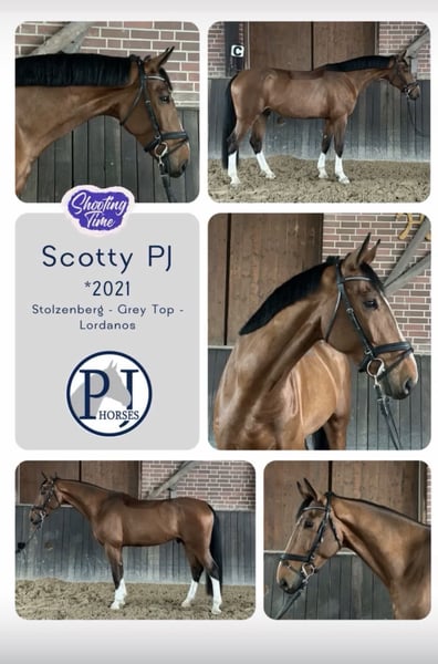 SPF-A* & A** platziert. Athletischer Wallach mit bester Rittigkeit, Nervenstärke und top Springvermögen. Scotty PJ ist ein junges Springtalent, das mit seinen tollen Reiteigenschaften begeistert. Easy im Handling, gibt er seinem Reiter Sicherheit und ein super Gefühl sowohl in der täglichen Dressurarbeit als auch über dem Sprung. Stets bemüht alles richtig zu machen, absolviert er unerschrocken sowie mit viel Lust am Springen seine Runden im Parcours und ist immer gut zu regulieren. Auch von einer unpassenden Distanz lässt er sich nicht erschüttern. So war Scotty PJ bereits in Springpferdeprüfungen Kl A* und A** erfolgreich aber hat Vermögen für viel mehr. Er wird momentan von einer Amateurreiterin geritten und ist auch in diesem Jahr schon gut platziert in Springpferdeprüfungen. Scotty PJ verfügt über einen guten Tüv und freut sich bereits darauf seinem neuen Reiter viele Erfolge zu schenken. Wir denken, der Wallach ist auch für die Vielseitigkeit interessant. Sohn der in Kanada erfolgreichen Stute Geneva PJ (1.30m); Großmutter Loveday ist zudem Mutter der erfolgreichen Amateurpferde Candy Crush PJ v. Canturo / Deutschland (1.40m), Coralie PJ v. Commissario / Deutschland (1.30m), Calla PJ v. Commissario / Kanada (1.30m), Zafira PJ v. Zirocco Blue / Deutschland (1.30m).