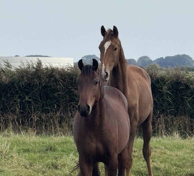 À vendre, de magnifiques hongres Hanoveriens âgés de 2 à 5 ans, directement issus d’élevage. Mesurant entre 1,65 m et 1,70 m, ils constituent la taille idéale pour des cavaliers ambitieux à la recherche d’un partenaire de dressage fiable. Ces jeunes chevaux de dressage impressionnent par leur apparence élégante et leur tempérament agréable. Ils font preuve d’un grand talent et d’une forte volonté d’apprentissage en dressage. Leur nature amicale les rend également intéressants pour des cavaliers moins expérimentés. Les chevaux sont en bonne santé et disposent de radiographies du dos sans anomalies. Ils sont régulièrement vaccinés et proviennent d’une lignée de qualité. Ils sont maintenant prêts à poursuivre leur formation avec un cavalier motivé. Pour toute question ou information complémentaire, je reste à votre disposition. Les visites et essais sont possibles sur rendez-vous.