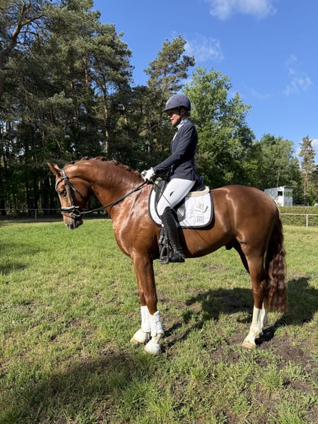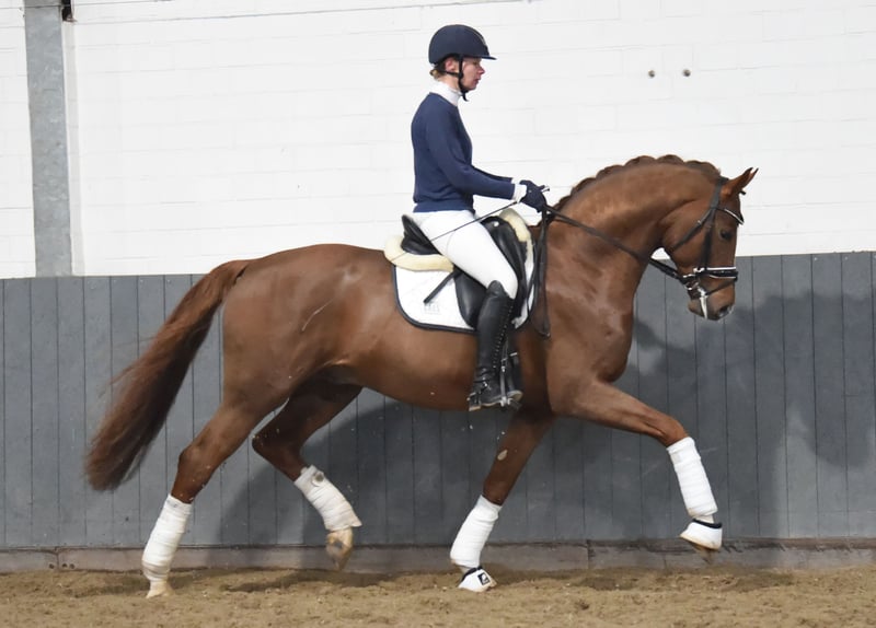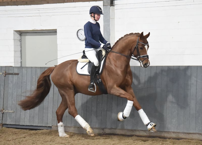 For Benidor impresses not only with his charisma and presence but also with the quality of his basic gaits and his work ethic. Since December 2024, he has been excellent to work with. He has participated in one competition so far and won the riding horse test with a score of 8.5 in trot and an overall score of 8.2. His mother was the vice-champion at the Bundeschampionat for 4-year-olds. X-rays are good.