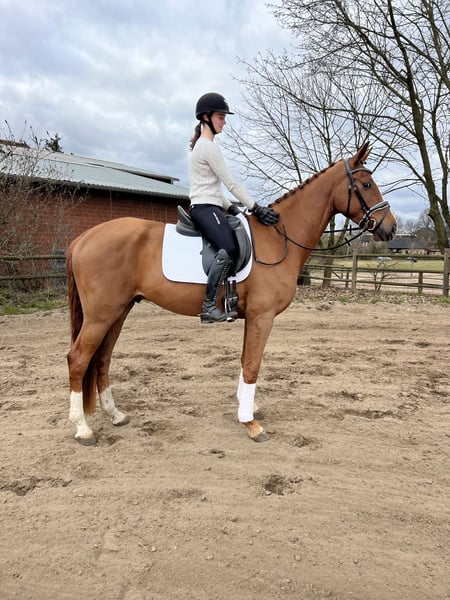 **Verkaufsanzeige: Hannoveraner Wallach** Zum Verkauf steht ein wunderschöner Hannoveraner Wallach, geboren im Jahr 2021. Mit einem Stockmaß von 170 cm und seinem auffälligen Fuchs-Farbe ist er ein echter Blickfang. Dieser talentierte Wallach eignet sich hervorragend für den Dressursport und zeigt bereits vielversprechende Ansätze in der Ausbildung. Er ist brav im Umgang, gut geritten und hat ein angenehmes Temperament. Er ist sowohl für erfahrene Reiter als auch für ambitionierte Einsteiger geeignet, die mit ihm gemeinsam weiter trainieren möchten. Bei Interesse oder für weitere Informationen stehe ich Ihnen gerne zur Verfügung. Besuchen Sie uns und überzeugen Sie sich selbst von diesem tollen Pferd!