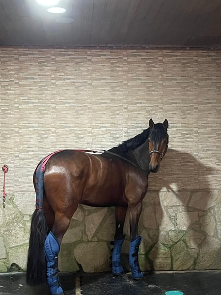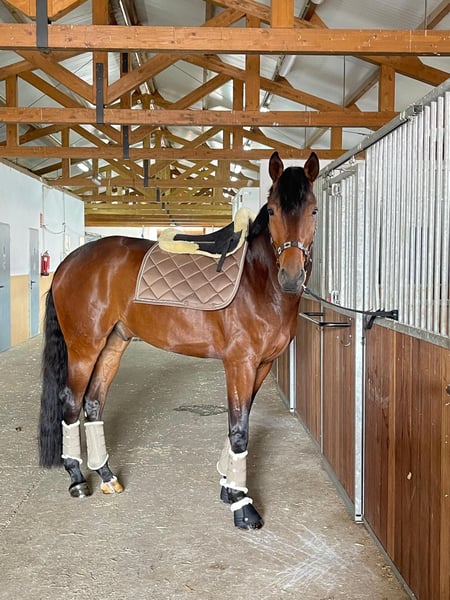 POR LA VIE Vivaldi x Sandro Hit Hannoveriano – Castrado – 5 años – 175 cm Espectacular caballo joven nacido en febrero de 2021, con un gran futuro para la doma clásica gracias a su calidad, presencia y extraordinarios movimientos. Destaca por tres aires de gran calidad: Paso amplio y elástico, con gran claridad en las pisadas. Trote expresivo, con suspensión natural y muy buen uso del dorso. Galope equilibrado, con cadencia y capacidad de reunión, ideal para el desarrollo hacia los niveles superiores. Ha participado con éxito en competiciones de caballos jóvenes, mostrando siempre regularidad, actitud y capacidad de aprendizaje dentro de la pista. Posee un carácter inmejorable, noble y colaborador. Es un caballo dispuesto a trabajar y con gran deseo de agradar, lo que lo convierte en una excelente opción para un jinete o amazona experimentad@ que quiera seguir desarrollando su potencial deportivo. Acostumbrado a vida en box, prado y caminador eléctrico, con manejo diario sencillo. Un caballo joven con talento, cabeza y calidad, listo para continuar su proyección en la competición. 📍 Más información y vídeos disponibles bajo petición.