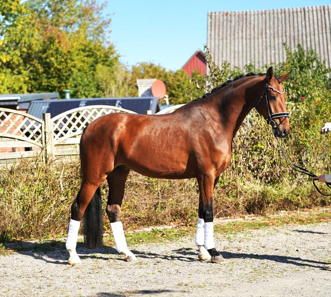 À vendre, un magnifique cheval de grande taille, fils de Friedrich der Große. Ce hongre a été doucement monté chez nous et a toujours fait preuve d'obéissance, d'attention et de volonté d'apprendre. Il se distingue par ses très bonnes allures de base, beaucoup d’expression et une silhouette harmonieuse sous la selle. Un excellent jeune cheval avec ce petit quelque chose en plus, qui séduit tant par sa montabilité que par son caractère. En manège, il est amical et facile à gérer. Dans le troupeau, il se montre équilibré et pacifique chez nous. Appels uniquement – pas de mails ! Prix hors TVA. Informations sans garantie.