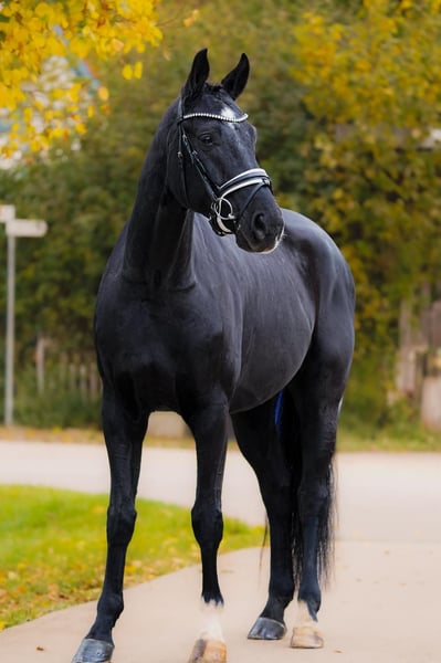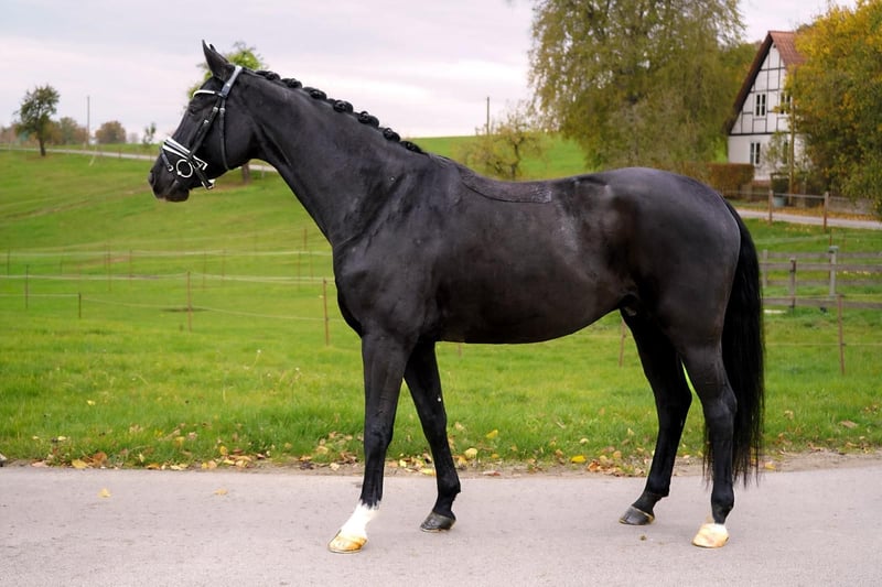 Festus ist ein 2020 geborener, wunderschöner Rappwallach mit einem Stockmaß von ca. 167cm. Er überzeugt durch seine liebenswerte, brave Art und präsentiert sich als perfektes Damenreitpferd. Er ist leichtrittig und immer bemüht seinem Reiter zu gefallen. Dressurmäßig befindet er sich aktuell auf A-Niveau und zeigt sich dabei motiviert, lernwillig und ausgeglichen. Durch seine guten GGA und sein freundliches Wesen ist er der ideale Partner für ambitionierte Reiter.