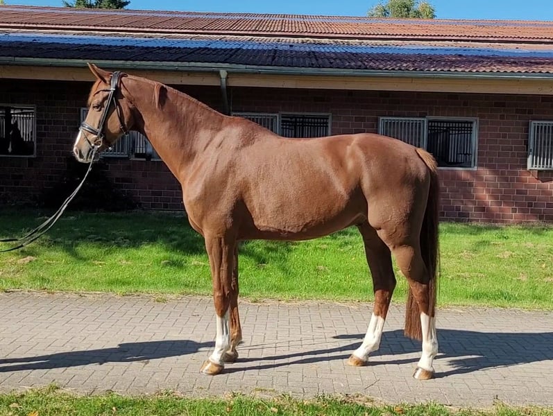 "Emil" is a stunning 6-year-old gelding by Escamillo out of a Con Amore mare. He is being gently and carefully trained, currently at a solid L level, and is learning flying changes. Cavaletti work and small jumps provide him with a welcome variety. Emil is a friendly horse that always shows a keen interest in people and is straightforward and curious in handling. Due to his young age, he is best suited for experienced and ambitious riders. If you are interested or have further questions, I am happy to arrange a viewing appointment.