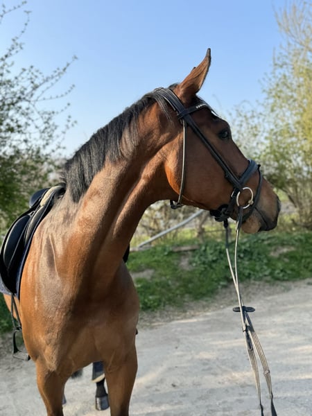 ***Anfragen gerne per WhatsApp an 0176 20286317 oder 0176 20286317*** Feel Good ist ein braver Wallach mit drei sehr guten GGA. Besonders hervorzuheben sind der Schritt und der Galopp. Er ist sehr menschenbezogen, brav im Umgang und beim Reiten. Im letzten Jahr ist er aufgrund von Wachstum schonend geritten und ausgebildet worden. Aussengalopp und Kurzkehrt klappen schon sehr gut. Mit den Seitengängen wurde spielerisch begonnen. Feel Good ist verträglich mit anderen Pferden, geht täglich in der Gruppe raus und ist vorne beschlagen.