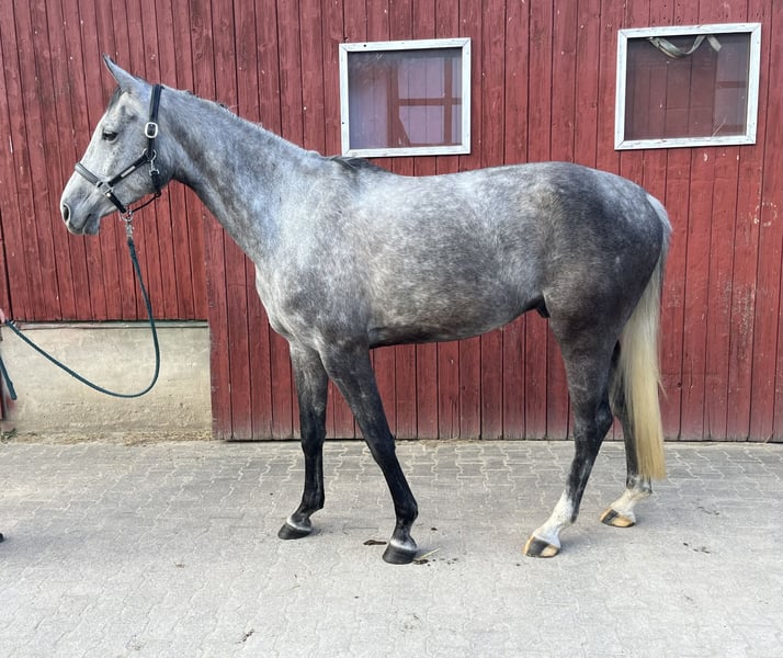 The horse is a 7-year-old gelding by Diacontinus out of Silvio. Gustav was briefly backed at age 5 but then not further trained. He has been in work again for nearly three months. During this time, he has proven to be well-behaved and motivated under saddle in the indoor arena, on the riding surface, and in the field. In free jumping, he shows a lot of potential and has recently completed his first small jumps under the rider.
