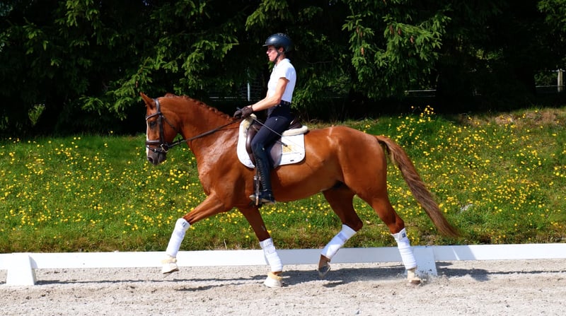 We are looking for particularly caring hands for this charming gelding. He is already confidently performing at level L, but he has health limitations that are manageable, but must be known. Bubi shows the PSSM II syndrome, which does not restrict his mobility, however, he should ideally not consume calcium, so for example no alfalfa and only soaked concentrated feed to avoid choke. A narrow stance at the spinous processes does not clinically restrict him in any way so far. However, he needs a loving new owner who is willing to manage his diet alongside the joy of riding. Bubi is being sold only due to emigration. For further information and appointments for trial rides, please feel free to contact us by phone at 0172-5330585 at any time.