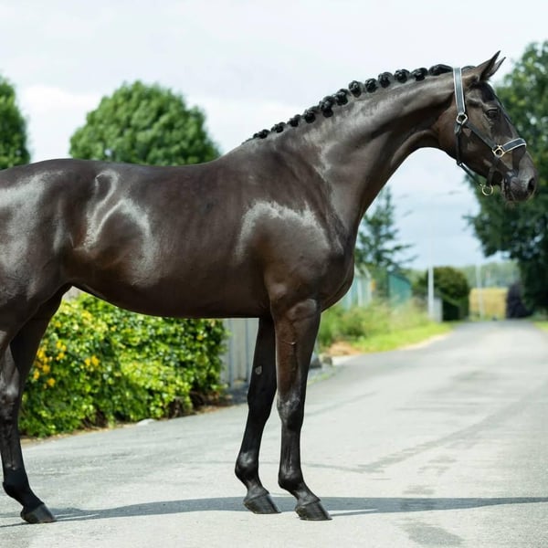 Dieses außergewöhnliche schwarze Dressurpferd vereint Eleganz, Kraft und Rittigkeit auf höchstem Niveau und ist der ideale Partner für ambitionierte Reiter mit Zielen im gehobenen Dressursport. Mit einem harmonischen, gut proportionierten Körperbau beeindruckt das Pferd durch seine natürliche Präsenz, einen edlen Kopf mit ausdrucksstarken Augen sowie einen optimal angesetzten, schön aufgewölbten Hals, der fließend in eine starke, elastische Oberlinie übergeht. Die Bewegungsqualität ist herausragend: drei überdurchschnittliche Grundgangarten mit viel Takt, Elastizität und Ausdruck. Der Schritt ist klar und raumgreifend, der Trab überzeugt durch Kadenz, Schwung und eine beeindruckende Bergauftendenz, während der Galopp durch Balance, Versammlungsfähigkeit und mühelose Regulierung besticht. Damit bringt das Pferd beste Voraussetzungen für Lektionen der schweren Klasse mit, einschließlich Versammlung, Seitengängen und ausdrucksstarken Verstärkungen. Besonders hervorzuheben ist die hervorragende Arbeitseinstellung. Das Pferd zeigt sich stets motiviert, lernwillig und aufmerksam. Es steht fein an den Hilfen, ist angenehm in der Anlehnung und überzeugt durch seine natürliche Fähigkeit zur Versammlung. Sein ausgeglichenes, freundliches Wesen macht es sowohl unter dem Sattel als auch im täglichen Umgang zu einem verlässlichen Partner. Selbstverständlich liegen vollständige, aktuelle und einwandfreie Röntgenbilder sowie umfassende tierärztliche Untersuchungsberichte vor, die die Gesundheit und Belastbarkeit dieses Pferdes bestätigen. Es sind keine gesundheitlichen Einschränkungen oder Unarten bekannt. Ob als zukünftiges Grand-Prix-Pferd oder als verlässlicher Sportpartner auf gehobenem Niveau – dieses beeindruckende schwarze Dressurpferd bietet eine seltene Kombination aus Schönheit, Leistungsbereitschaft und geprüfter Gesundheit und stellt somit eine hervorragende Investition für den anspruchsvollen Dressurreiter dar.