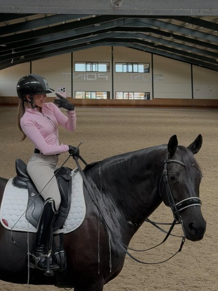 Ein außergewöhnlich attraktiver, komplett schwarzer Hannoveraner Hengst, der sowohl im fortgeschrittenen Springsport als auch in der höheren Dressur hervorsticht. Dieses elegante Sportpartner fällt sofort durch sein harmonisches Exterieur, seine kraftvolle Erscheinung und seine hervorragende Rittigkeit auf. Der Hengst verfügt über ein korrekt gebautes Fundament, eine starke und gut entwickelte Hinterhand sowie eine schulterfreie Bewegung, die ihm optimale Bewegungsfreiheit sowohl im Parcours als auch in der Dressur ermöglicht. Seine Grundgangarten sind von hohem Niveau: ein großzügiger, sauberer Schritt, ein elastischer und ausdrucksvoller Trab mit viel Impuls aus der Hinterhand sowie eine gut getragene, bergauf gesprungene Galoppade, die sich hervorragend für höherklassiges Training eignet. Im Springen zeigt er viel Vermögen, eine sehr gute Technik und ein scharfes Auge für die Sprünge. Er springt mit Abfuhr, Vorsicht und Übersicht. In der Dressur überzeugt er durch seine Arbeitsbereitschaft, feine Anlehnung und sein Vermögen zur Versammlung. Daher ist er ein idealer Partner für Reiter mit Ambitionen im höheren Sport. Charakterlich ist er zuverlässig, arbeitswillig und ausgeglichen. Er bleibt fokussiert im Training und verfügt über ein stabiles Temperament, was ihn auch für erfahrene Amateur- oder ambitionierte Reiter geeignet macht. Besonders hervorzuheben ist sein ausgezeichneter Gesundheitszustand: alle veterinärmedizinischen Untersuchungen, inklusive aktueller Röntgenaufnahmen, sind vollständig in Ordnung und ohne Befund. Der Hengst ist einsatzbereit für den direkten Einsatz im Sport. Ein Pferd mit außergewöhnlichen Qualitäten, das durch Talent, Einstellung und Ausstrahlung überzeugt.