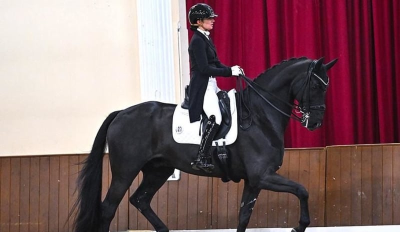Absolutely stunning, jet-black Hanoverian gelding with impressive presence and outstanding all-rounder qualities, who convinces in every aspect. This exceptional gelding captivates with his noble, modern appearance, correct conformation, and harmonious, expressive exterior. His three above-average gaits are lively, elastic, and consistently rhythmical, with natural balance and freedom of movement. This makes him equally suitable for dressage, jumping, and eventing. Under saddle, he is very rideable, eager to perform, and attentive, always responding delicately to the rider's aids and demonstrating a remarkable work ethic. He learns quickly, shows great motivation, and remains calm and focused even in new situations. His honest, balanced character makes him a pleasant partner both in sport and in daily handling. In the stable, during farrier visits, loading, and general handling, this gelding proves to be uncomplicated, well-behaved, and people-oriented. He is well-trained and brings joy every day. The gelding has undergone a full veterinary examination, including a comprehensive pre-purchase assessment with current X-rays. All veterinary reports, X-ray images, and examination documents are available in full and can be transparently provided. A true eye-catcher with quality, talent, and potential – a versatile sport horse for ambitious riders seeking a reliable, elegant, and high-performance partner at the highest level.