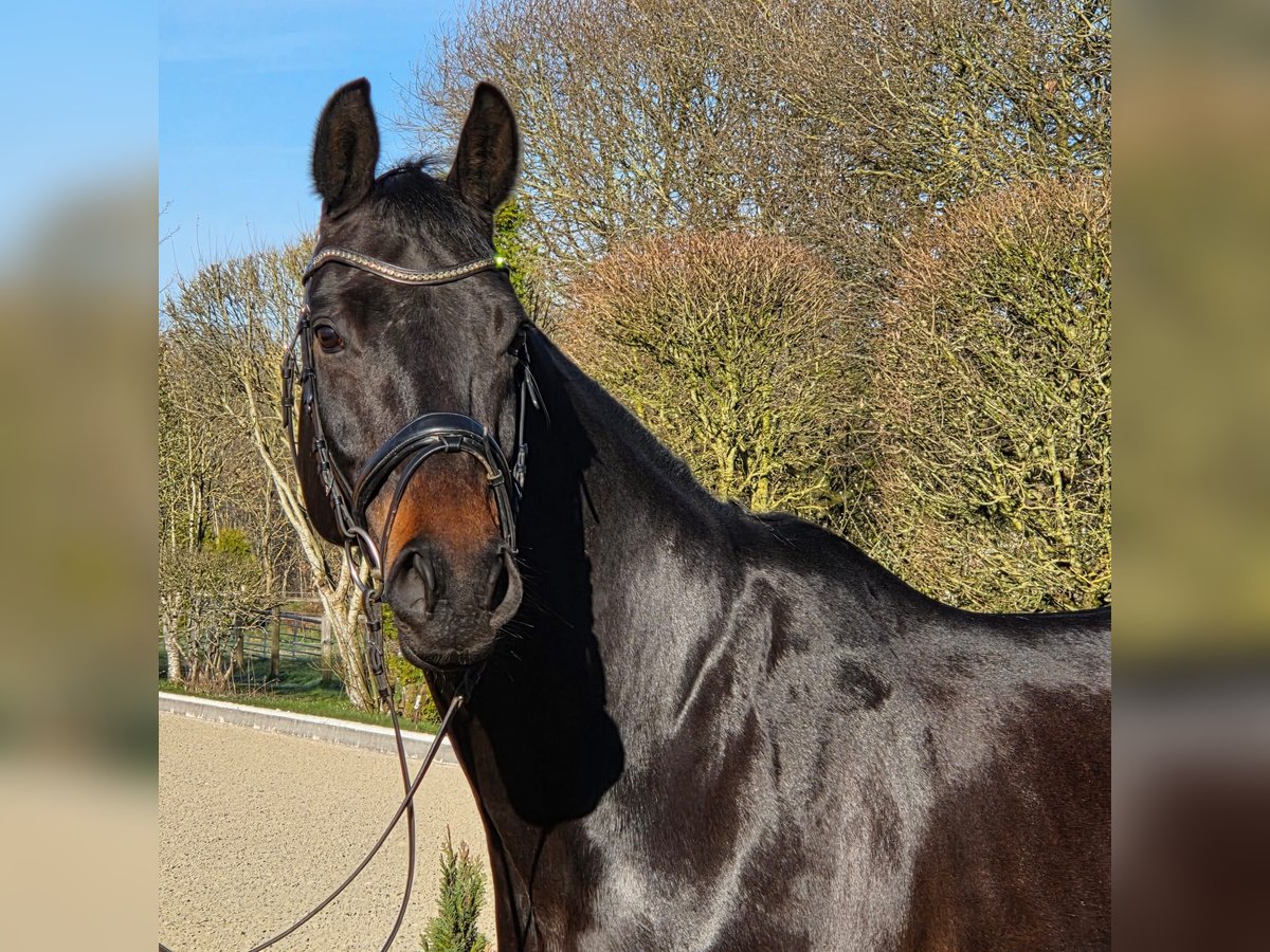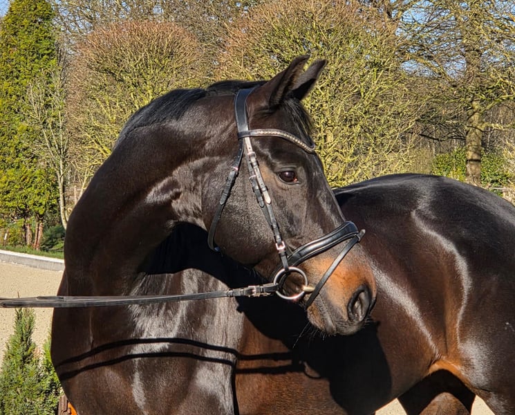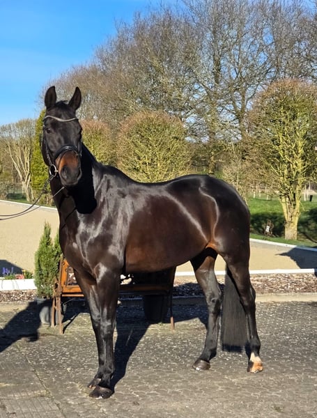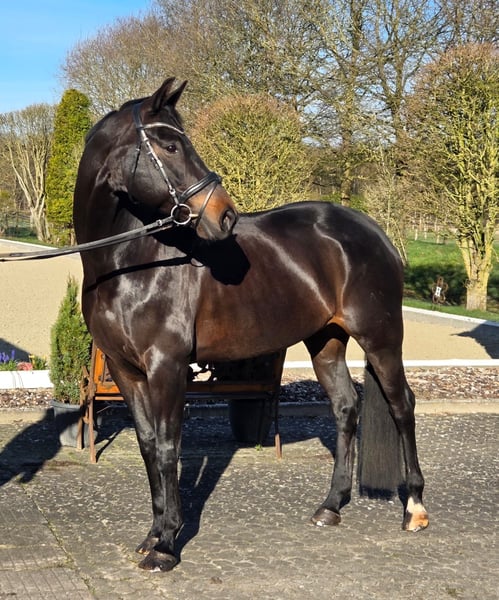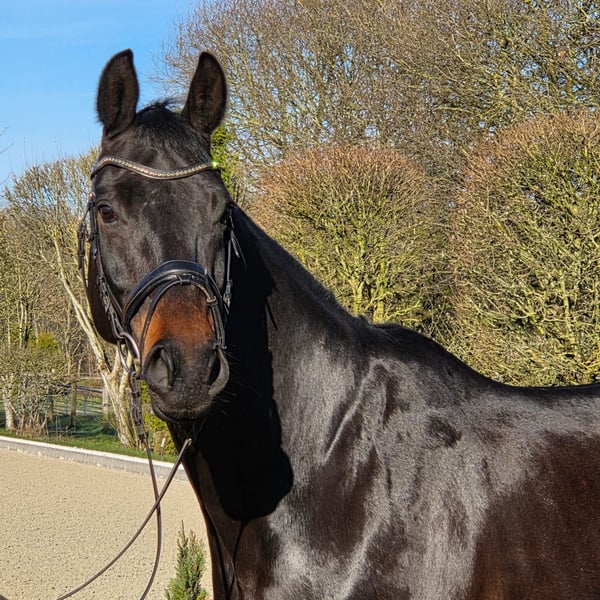 Elegant Hanoverian Mare – Versatile Dressage Partner This beautiful Hanoverian mare, born in 2016, impresses with her refined appearance and balanced temperament. Standing at 16.1 hh, she offers the perfect size for ambitious riders who value quality and character. Her deep black bay coat highlights her noble presence and makes her a true eye-catcher in the dressage arena. Well-schooled and exhibiting a harmonious basic training, she is a promising partner for dressage. She has a solid foundation and already shows initial dressage movements, remaining attentive and eager to learn at all times. Thanks to her friendly and reliable nature, she is suitable for advanced riders as well as ambitious young riders. She is healthy, well-groomed, and regularly vetted, ready to enthusiastically take on her next tasks. This Hanoverian mare is the ideal choice for those seeking an elegant, well-trained dressage partner who can perform confidently both in training and at competitions. I am happy to provide further information and arrange a personal viewing.