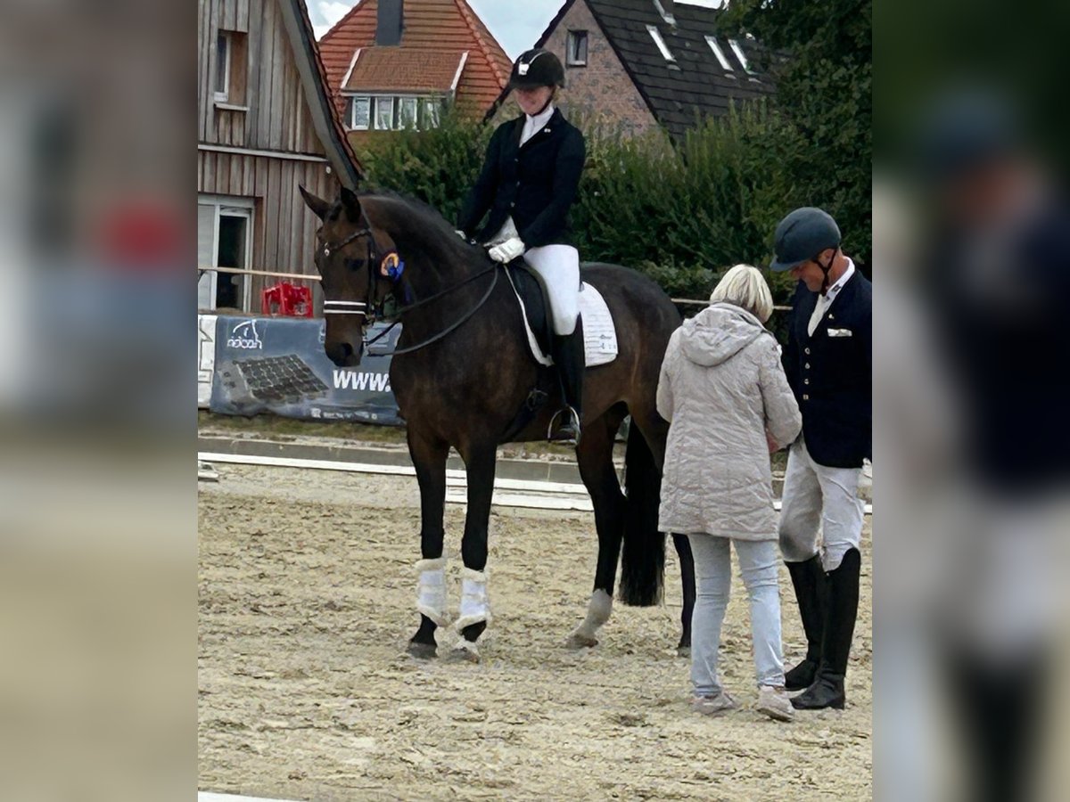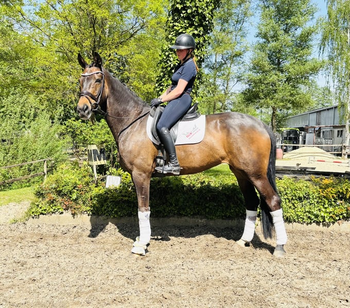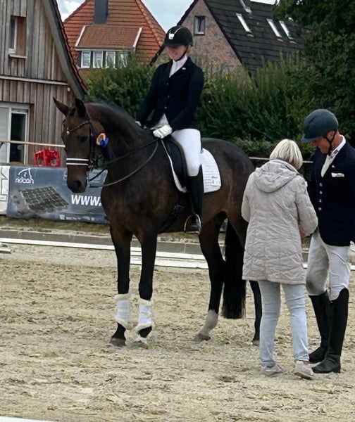 Cette jument de dressage est directement issue de l'élevage et est à vendre chez nous. Elle est formée jusqu'à la classe S, très confortable à monter et peut être montée par tout le monde.