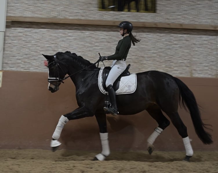 Dear Interested Parties, To arrange a viewing or trial ride, please send me a WhatsApp message. For further questions, I am available during the day via WhatsApp, and you can reach me best by phone between 4 PM and 7 PM. I look forward to hearing from you. www.angelina-devittorio.de ⭐️Dornröschen⭐️ Age: 13 years (2012) Height: approx. 16.1 hh Bloodlines: Dancier x Sandro Hit Training level: Successfully competed in M with scores up to 8.0 X-rays: Good radiographs available Beautiful mare by Dancier – well-behaved, high-quality, and light-footed For sale is an extremely appealing mare born in 2012, by the proven dressage sire Dancier. Since the age of four, she has been consistently promoted and shown by an amateur rider. As a young horse, she was highly placed in young horse classes and was subsequently trained reliably up to M*/M** level in dressage, successfully competing at shows. Winner in dressage tests at M level with scores up to 8.0. Character & Rideability This mare impresses with her calm, brave, and resilient nature, yet she remains sensitive and responsive to aids. She is motivated, eager to perform, and reacts delicately to the rider’s cues. Occasional small hops due to excess energy or a startle are possible, but she remains always controllable. She is not spooky and can be reliably and calmly ridden both at home and in competition. She forms a close bond with her handler, enjoys attention and grooming, and is always friendly in daily handling. Handling & Care Exemplary in the farrier’s presence and loading Reliable both alone and in a group in the field Currently kept in a mixed herd (mares & geldings) Gentle in the stable and easy to handle – suitable even for less experienced riders Training & Suitability The mare has a solid dressage training with competition experience up to M*/M** level. She enjoys working over poles, cavaletti, and small jumps, although recent training has been limited due to time constraints. Thanks to her temperament and training, she is ideally suited as a high-quality leisure horse or competition horse, suitable for amateurs (from A/L level). However, the owner prefers not to sell her to inexperienced hands or beginners. Special Features The mare stands out for her exceptional reliability – she was even ridden until shortly before the owner’s pregnancy due to her calm and uncomplicated nature. Reason for Rehoming The mare is being offered solely due to time and financial constraints (small child, career). A loving home that offers enough time, understanding, and riding quality is sought. Further videos and information available via WhatsApp. ⚜️ Phone: 0171-3438949 ⚜️ Email: a.devittorio@web.de ⚜️ https://www.ehorses.de/angelinadevittorio Facebook and Instagram: Angelina De Vittorio